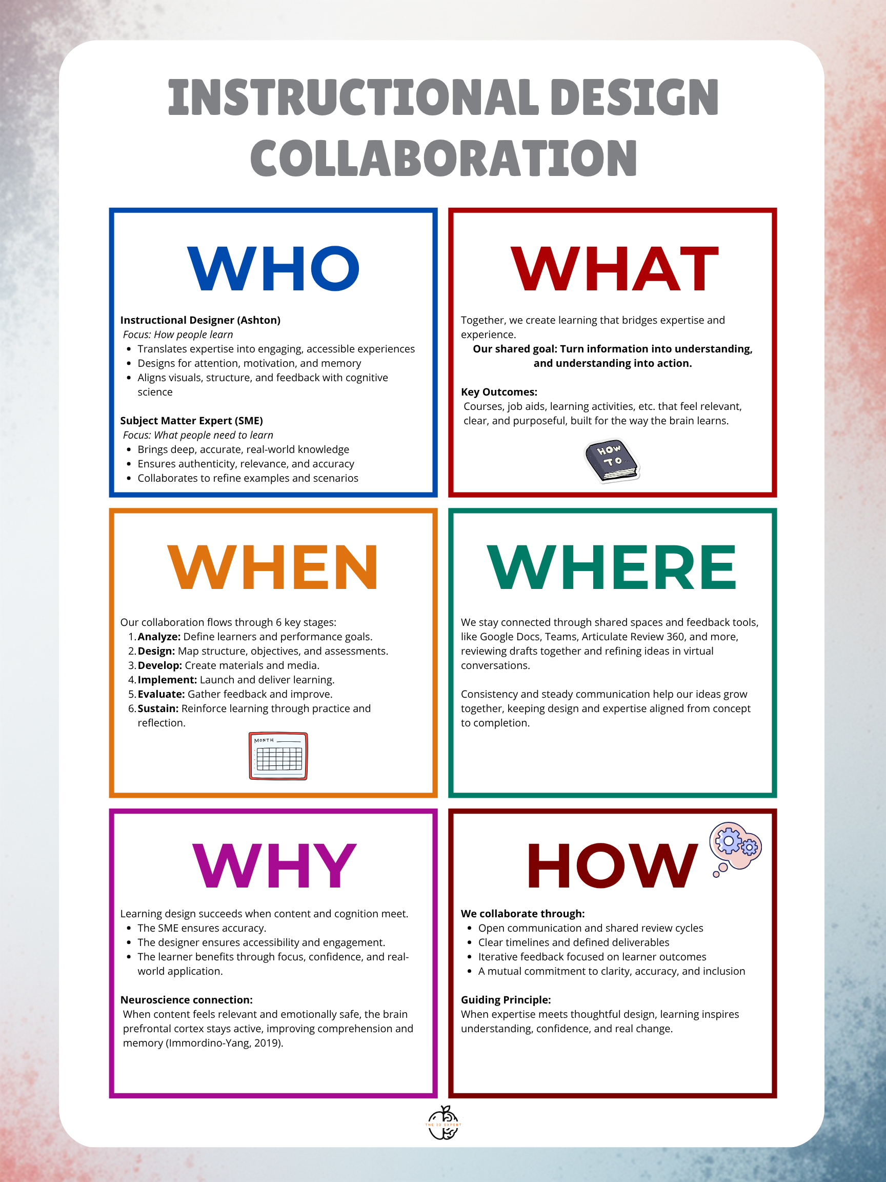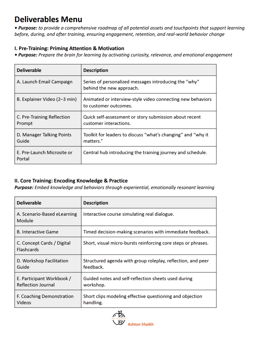 These are short course samples, not full trainings, designed to highlight what I call my value wedge: the unique blend of neuroscience-aligned design, instructional strategy, and human-centered innovation that drives measurable results.